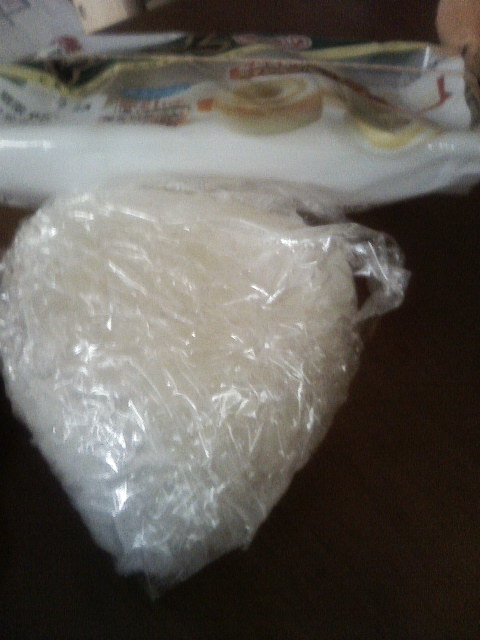手作りのおにぎりと、弁当の残り物のちくわ( ̄▽ ̄;)